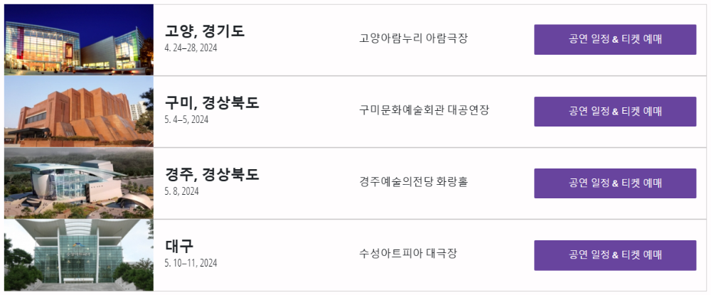 - 고양 : 2024.04.24 ~ 04.28 (경기도, 고양아람누리 아람극장)